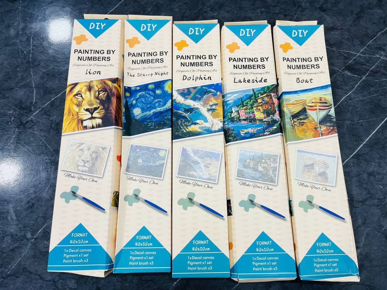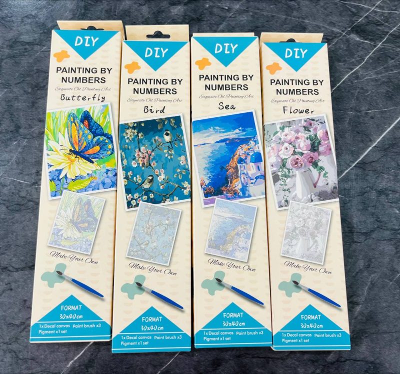 هر بسته یه نقاشی رول شده همراه رنگهای مورد نیازش و 3 عدد قلمو در سایز های مختلفه😍🌸